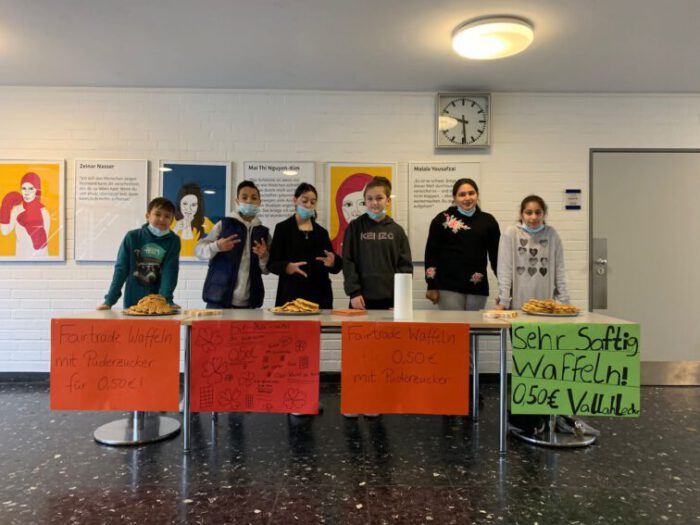 Die Schülerinnen und Schüler des 6. Jahrgangs haben kurz vor Weihnachten leckere Waffeln gebacken und in der Schule verkauft. In unserer Fairtrade Schule wurden die Waffeln natürlich nur mit fair gehandelten Lebensmitteln zubereitet. Den Erlös spenden die Kinder gern an die Kinderkrebsstation des UKM. Vielen Dank! Das war eine schöne Überraschung für alle!